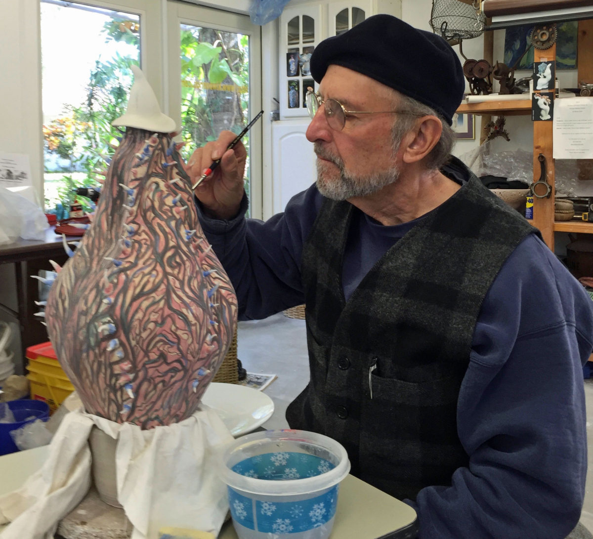 Home Page DR Harris painting Heart of Thornes in Ki Woon Huh’s ceramic studio, Sarasota, Florida. January 2016.