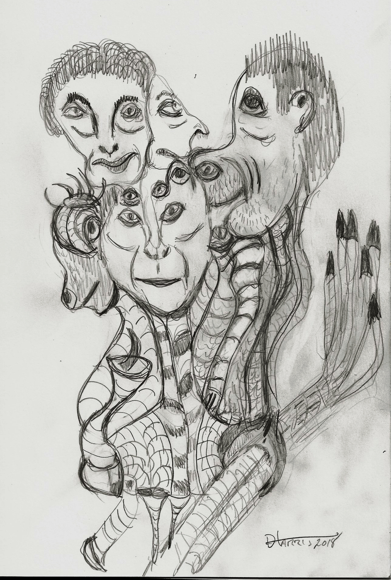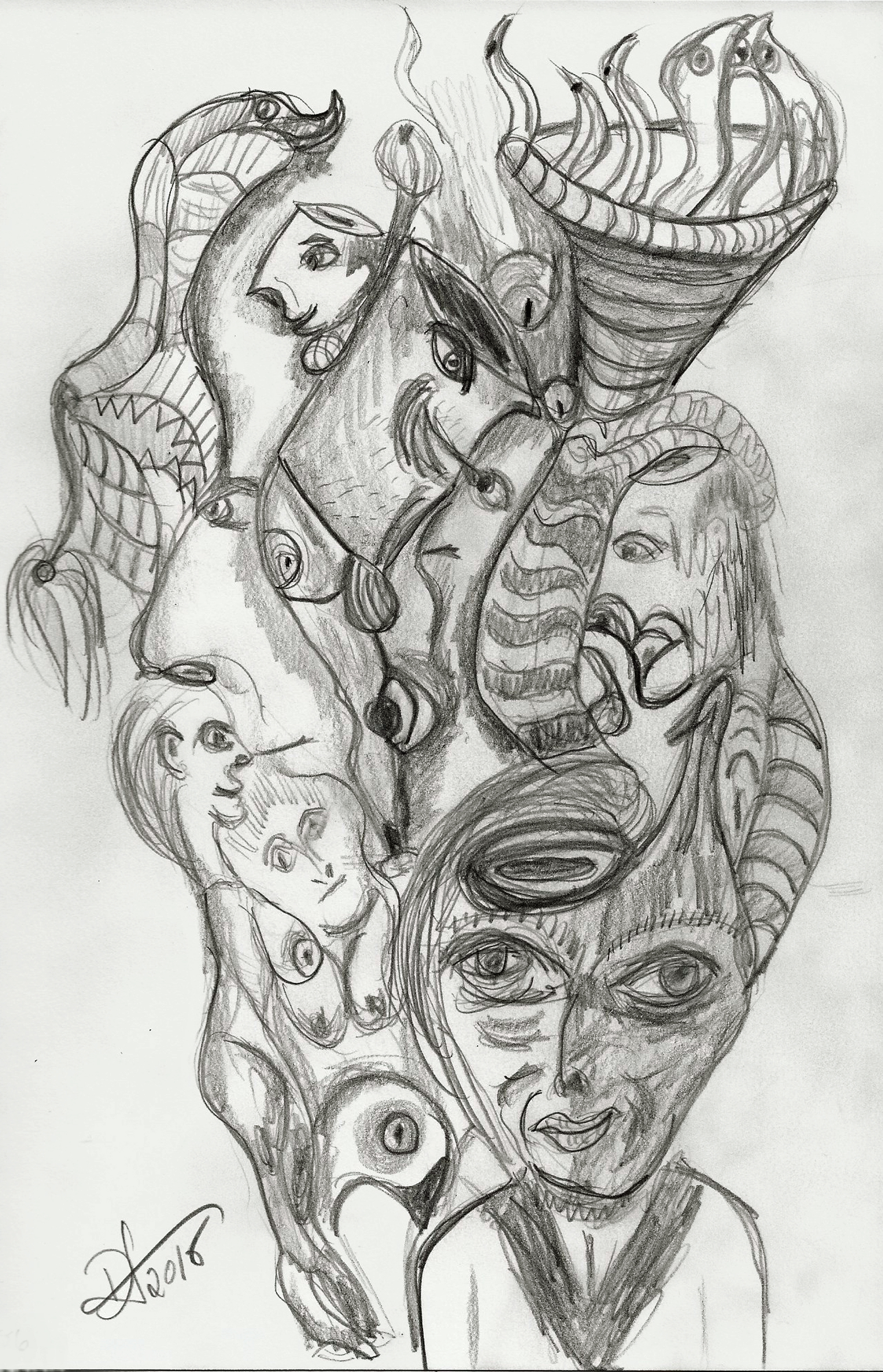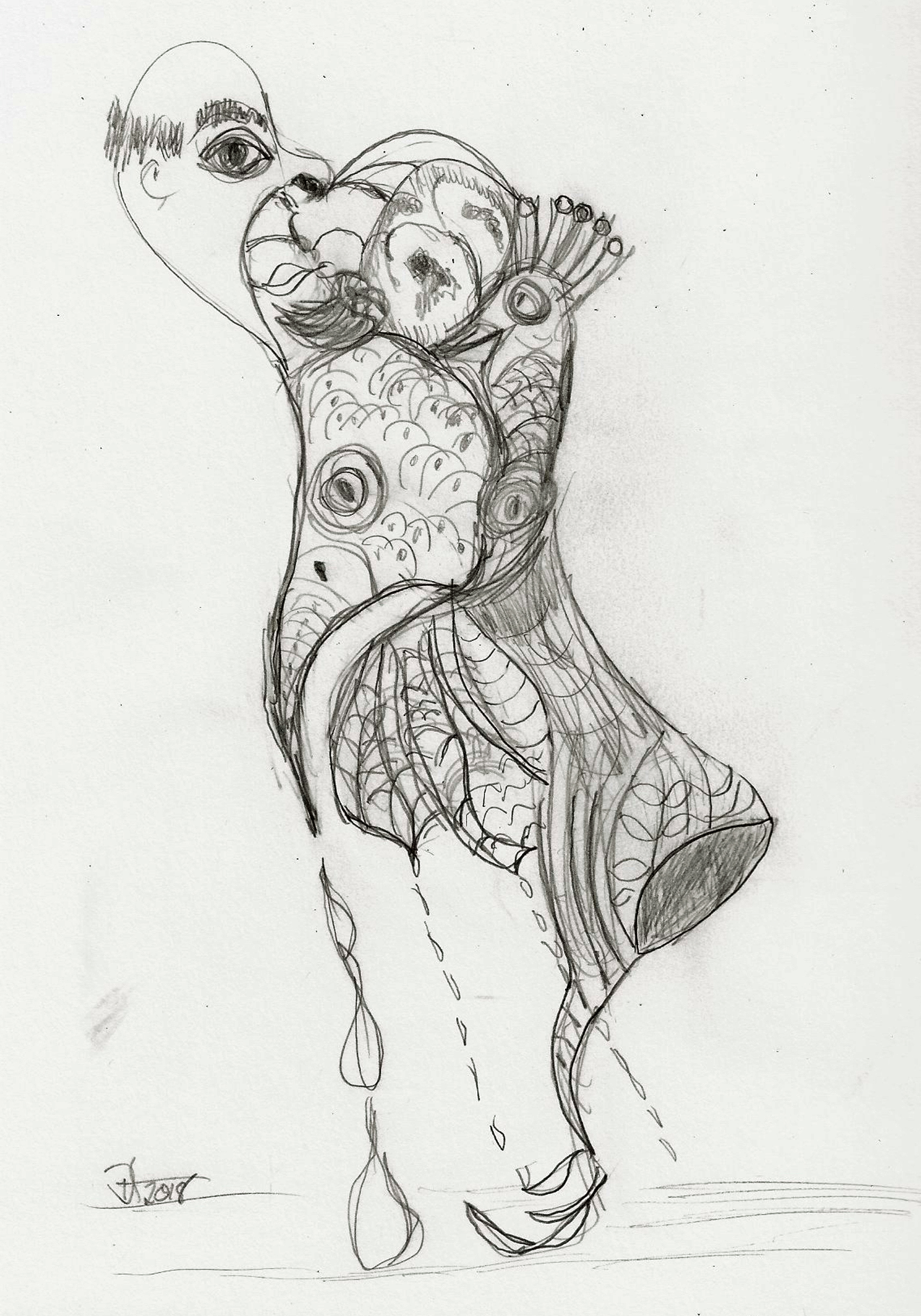There’s a certain harrowing esthetic with all the dark lines that I’m enjoying at the moment. The subject matter remains at the intersection of sleep and wakefulness where images, (erotic, mundane, and terrifying) meld into a surreal gumbo of lines.