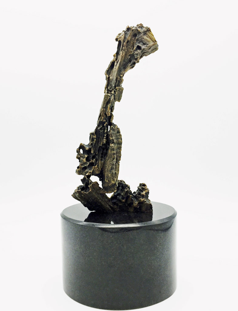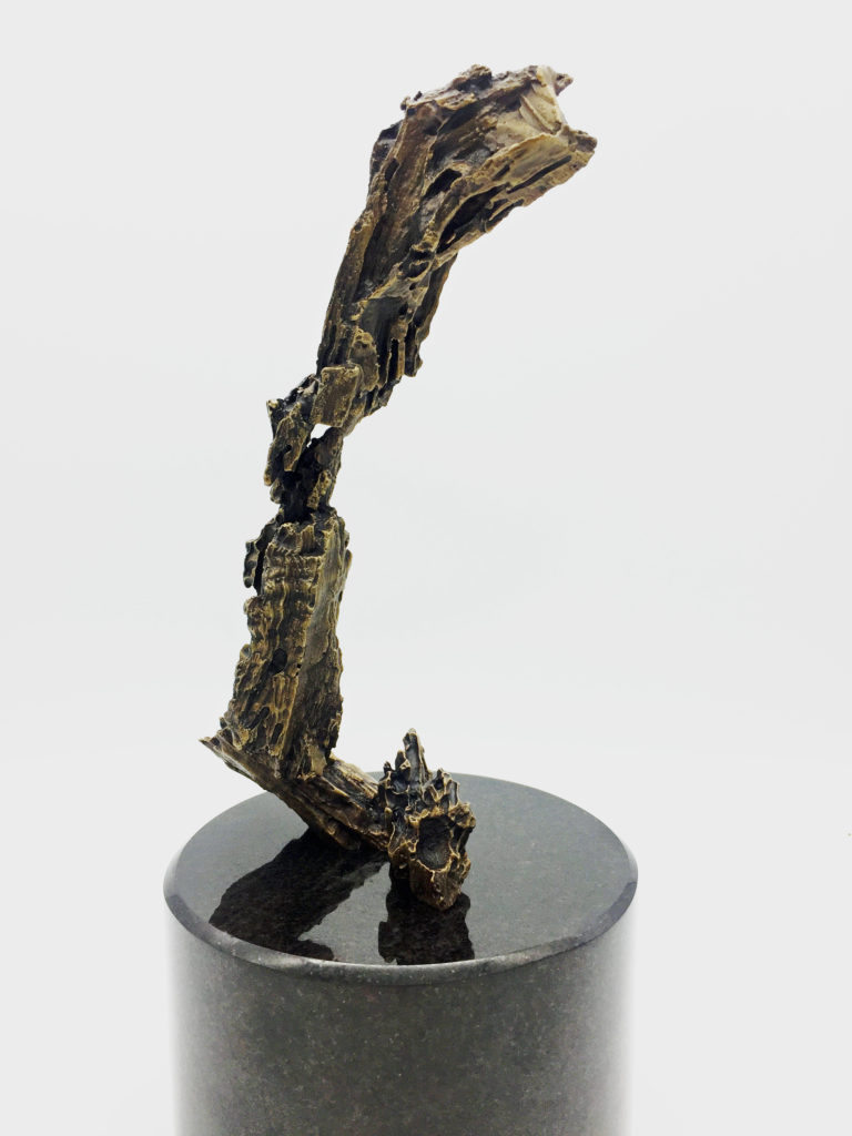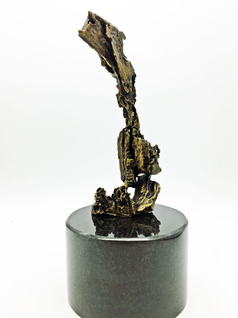 The Cry is my first bronze cast sculpture. The very talented artists at Bronzarts in Sarasota, Florida managed to capture 99% of the detail in this very complex piece. Stevan Kuyper was the mold maker and Wayne Dyer did the cleaning, welding and detail work after the pour. They both were excellent to work with and are very knowledgable and informative about the whole process. The Cry is a bronze version of my wood sculpture The Cry. The bronze version is 8″ (20cm) tall, 11″ (28cm) with the granite base. I am currently seeking funding for a 6-foot version and buyers for the smaller version. The mold can support an edition of 20.