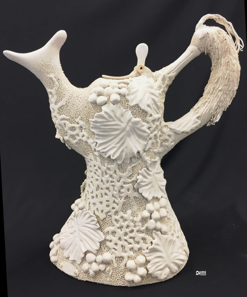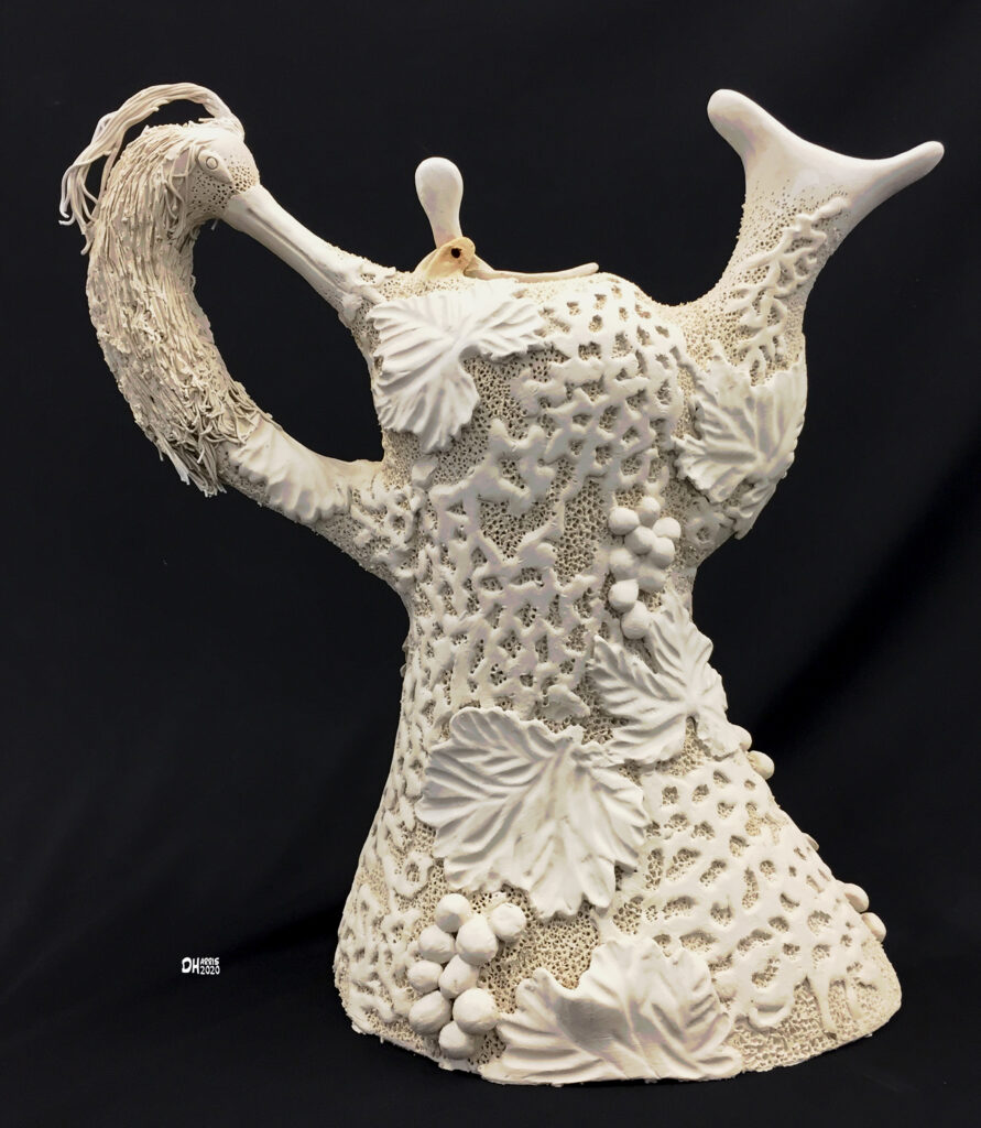 High fire porcelain flagon (wine pitcher). Slab-made, hand carved.