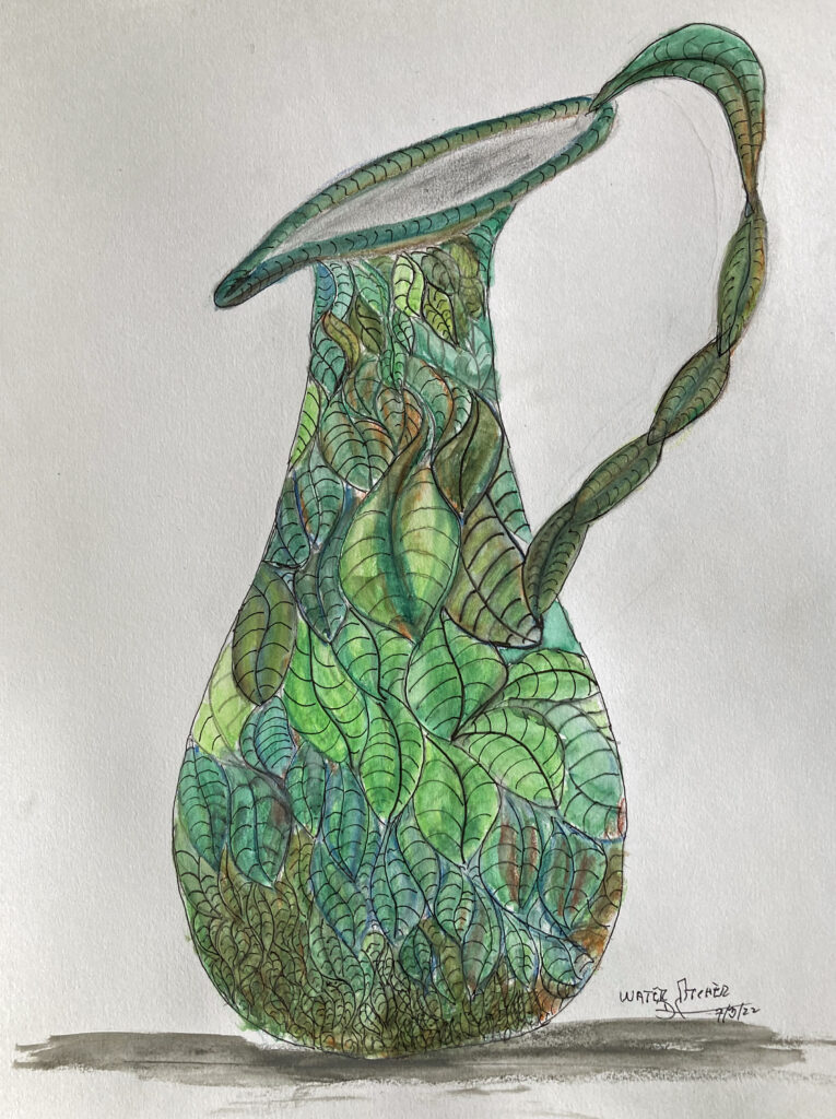 I have added ink pen to my drawing tools. I am using an Arts Hybrid Technica 0.3mm pen by Pentel. I’ve also rediscovered my Shaeffer 585 gold nib medium-fine fountain pen. This pen was a gift from a music composition teacher. For years, even after e-mail, I wrote 90% of my correspondence with this pen. Shaeffer black ink. (Not permanent).