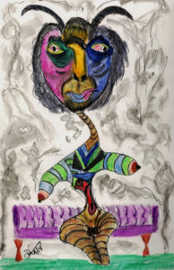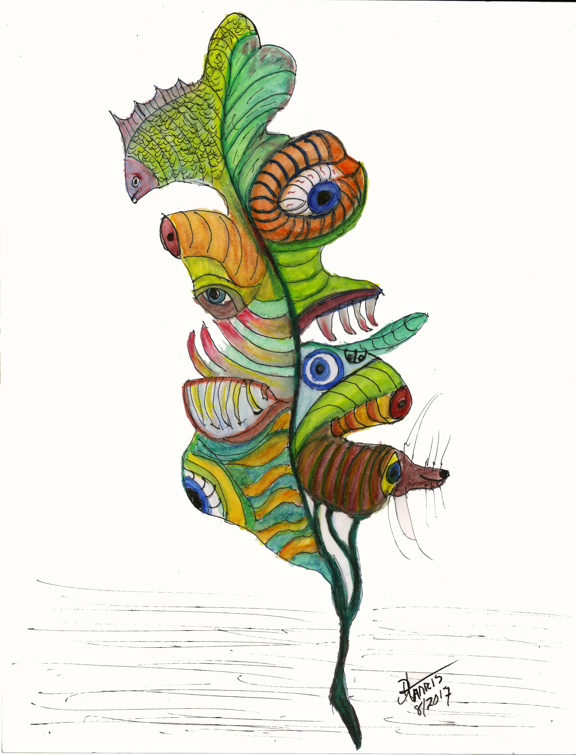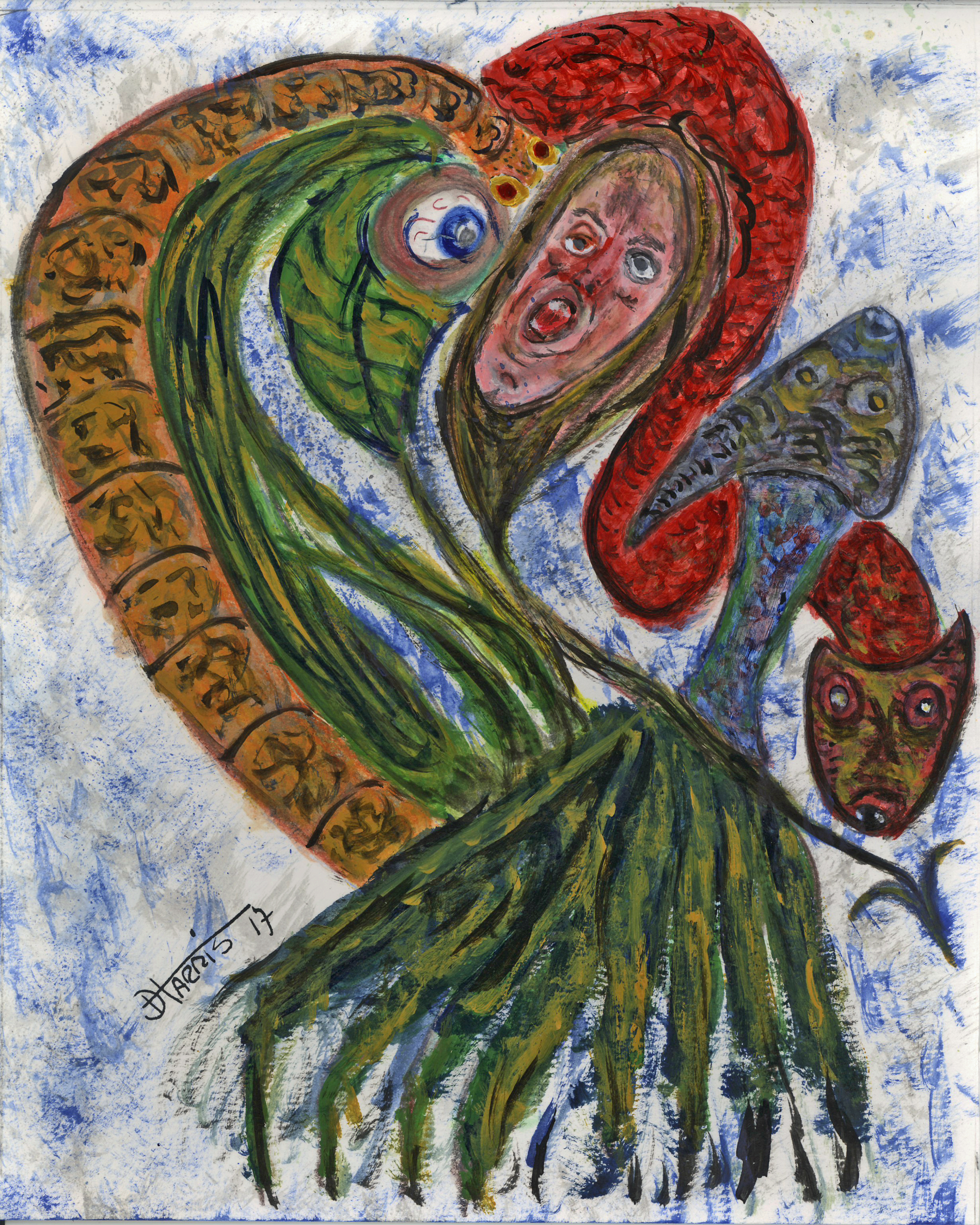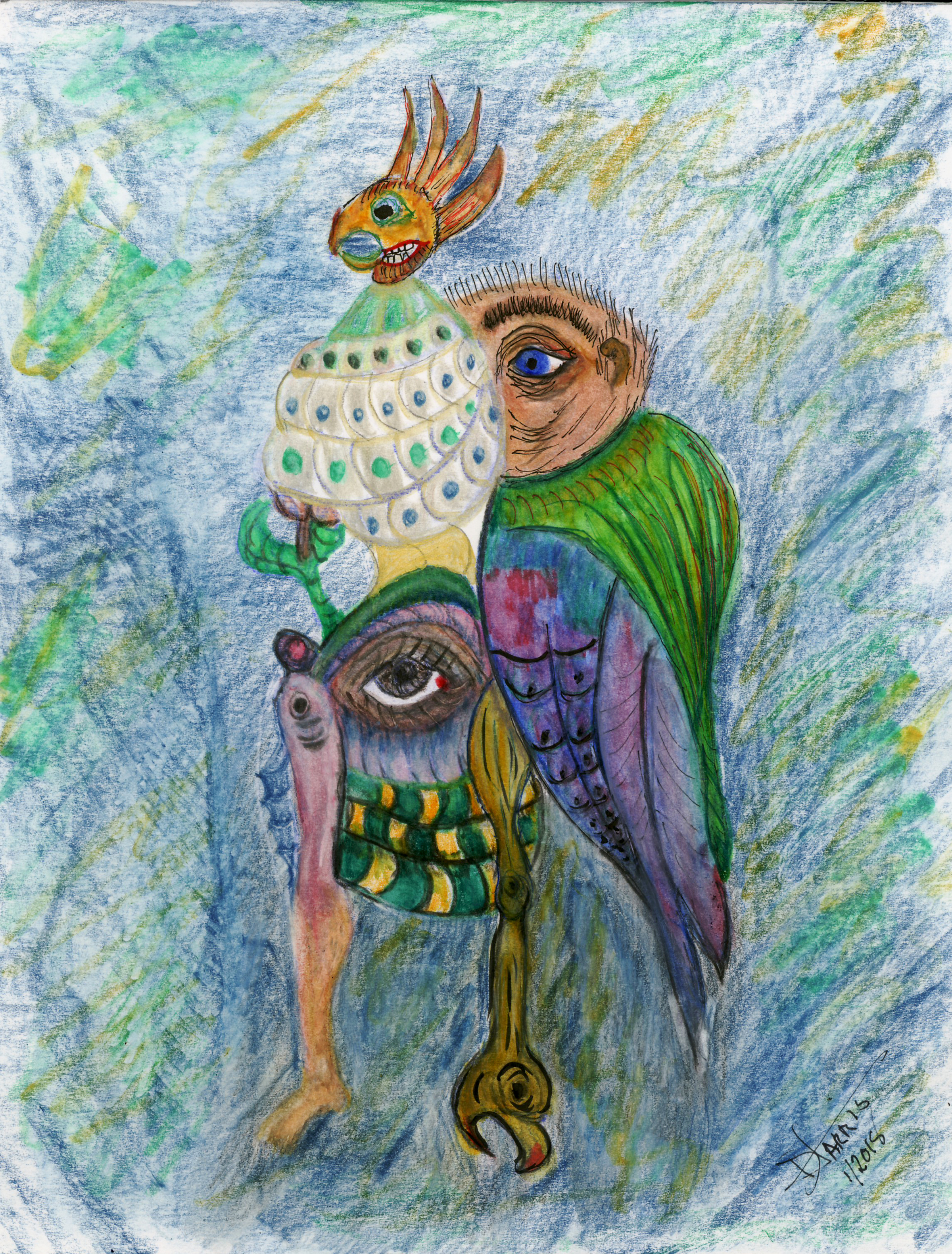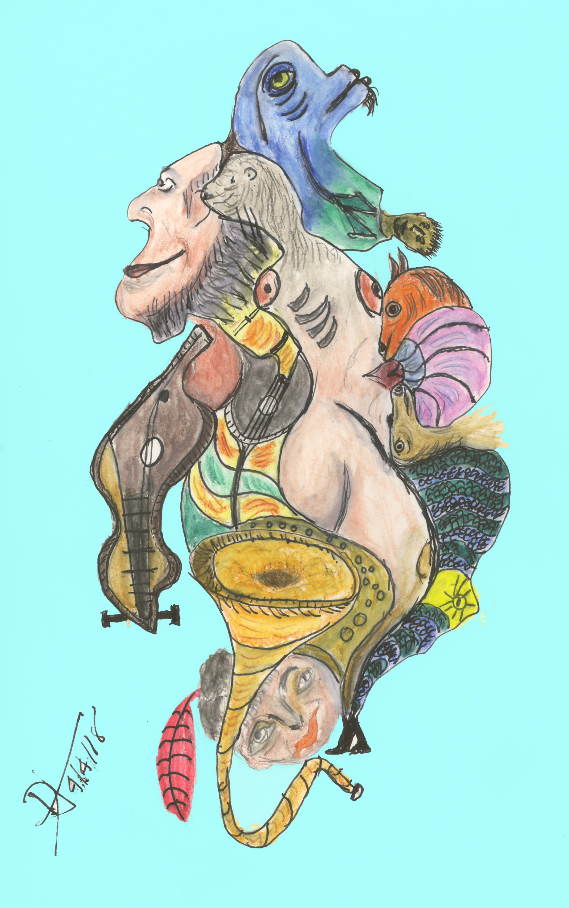 The Night Book is a folio of mixed-media paintings: pencil, ink, watercolor, Aquarelle pencil & acrylic. The paintings began as pencil, later ink, drawings made in my bedside Moleskine and Stillman & Birn sketchbooks while in that zone between wakefulness and sleep, A world devoid of reason but rich in images: half-formed, unrelated, surreal, erotic, even terrifying. A critic likened my phantasmagoric paintings to graphic poetry. Inspiration for the Night Book project came from Goya’s Los Caprichos (1799), and from François Desprez’s (1655) and Gustave Doré’s (1854) illustrations for Rabelais’s Pantagruel (1655), in my novel, The Nude Pianist (Fictionaut,­­­ 2016), a few of these paintings appear as the work of Francesco Martinelli.