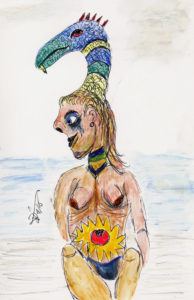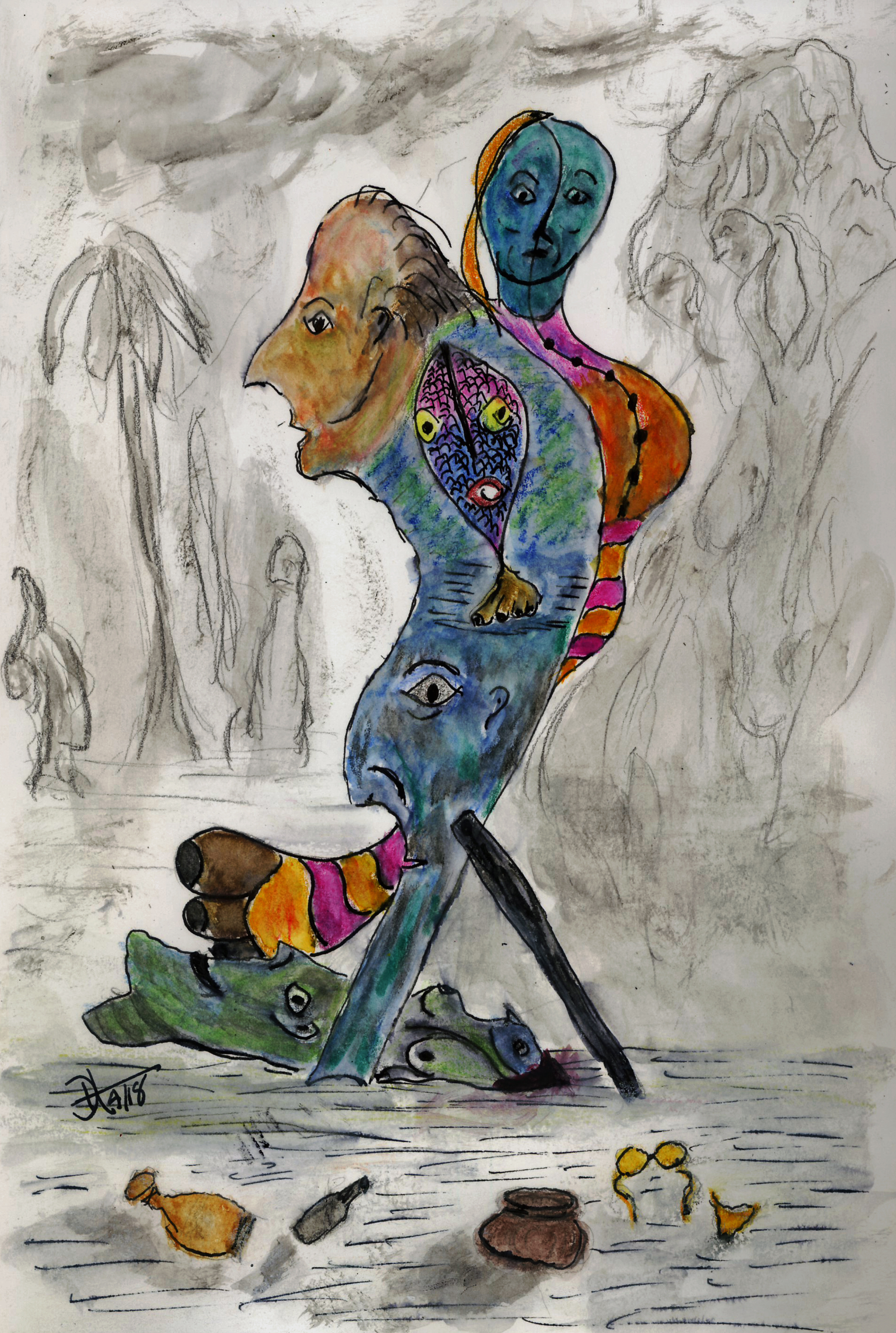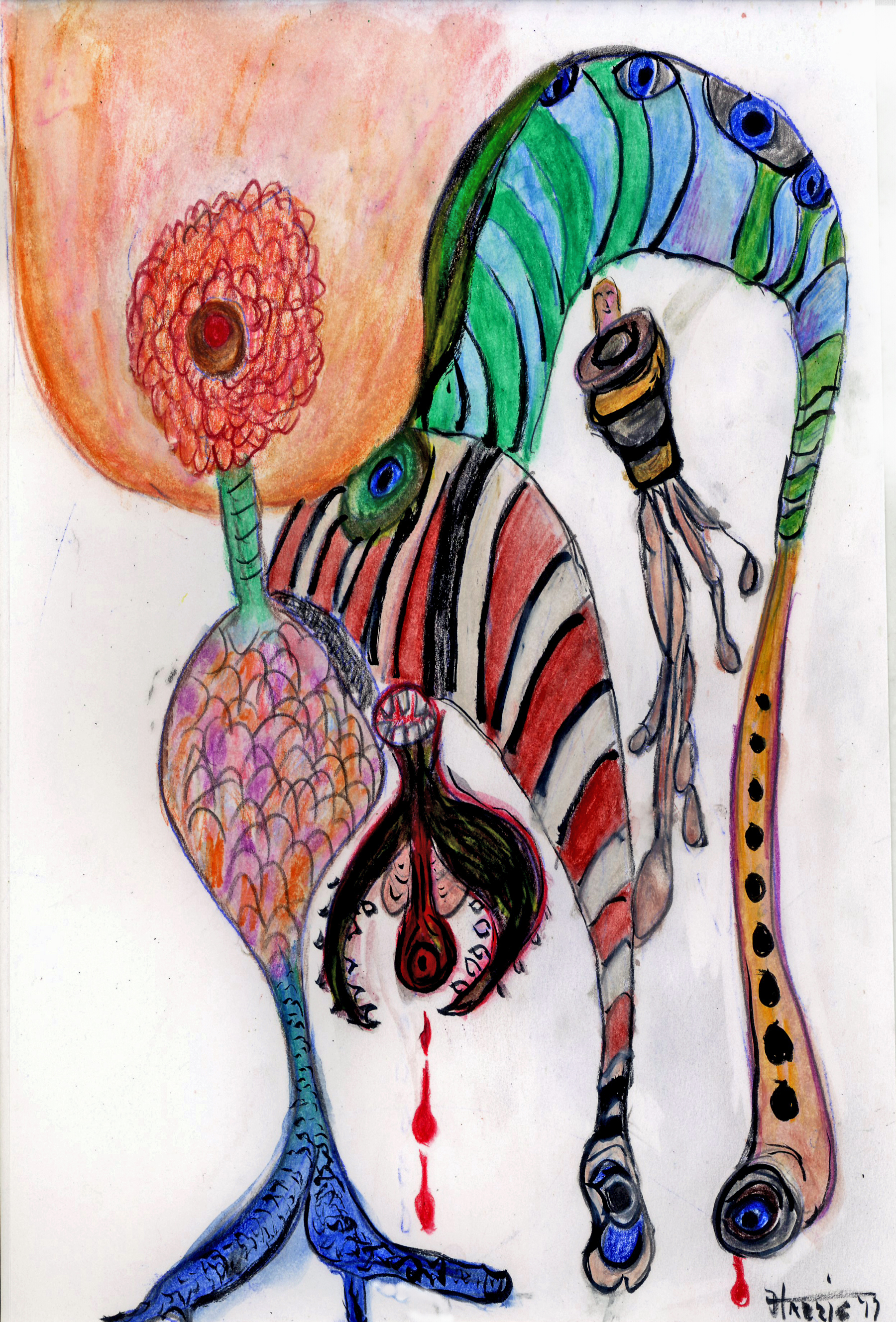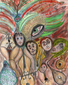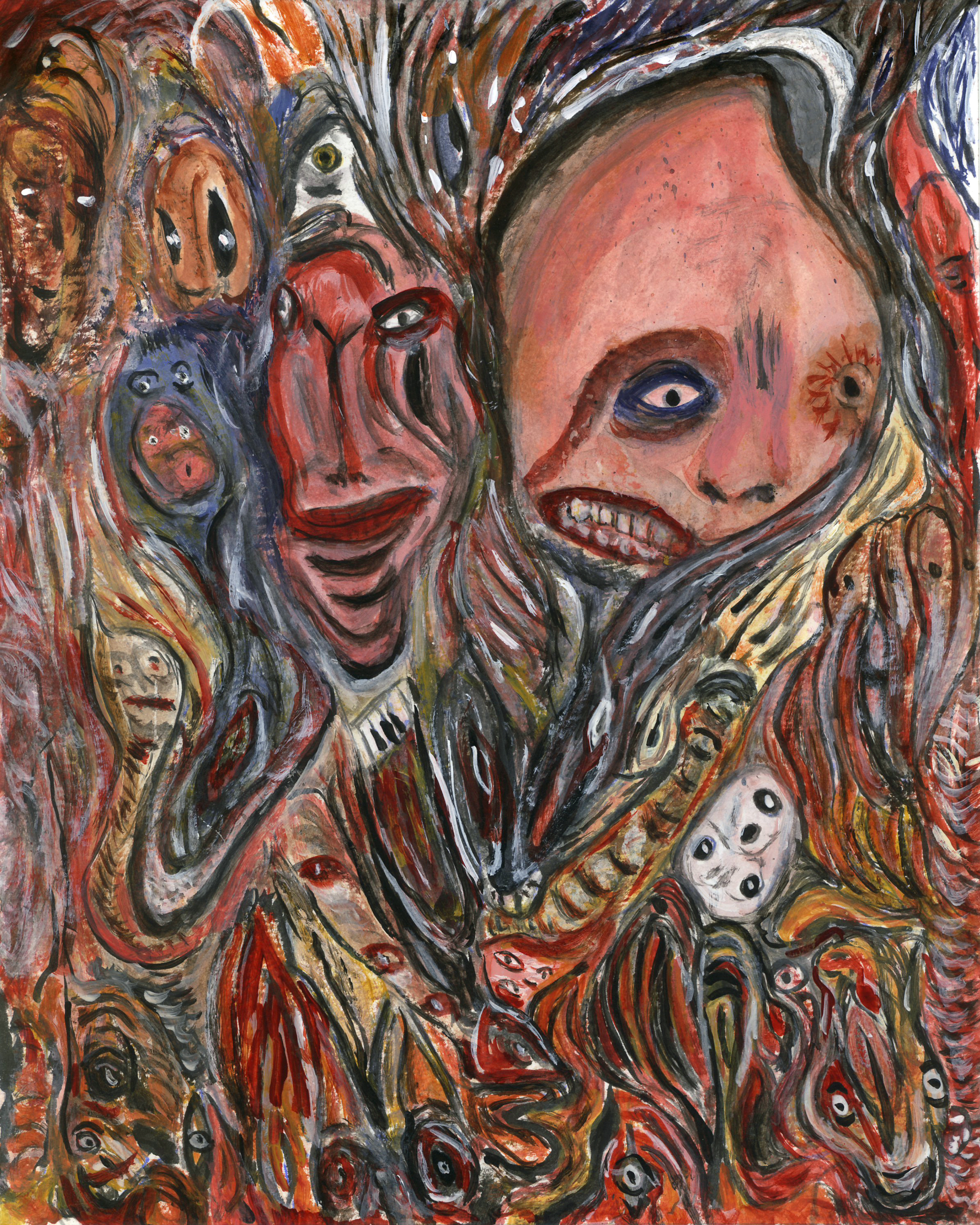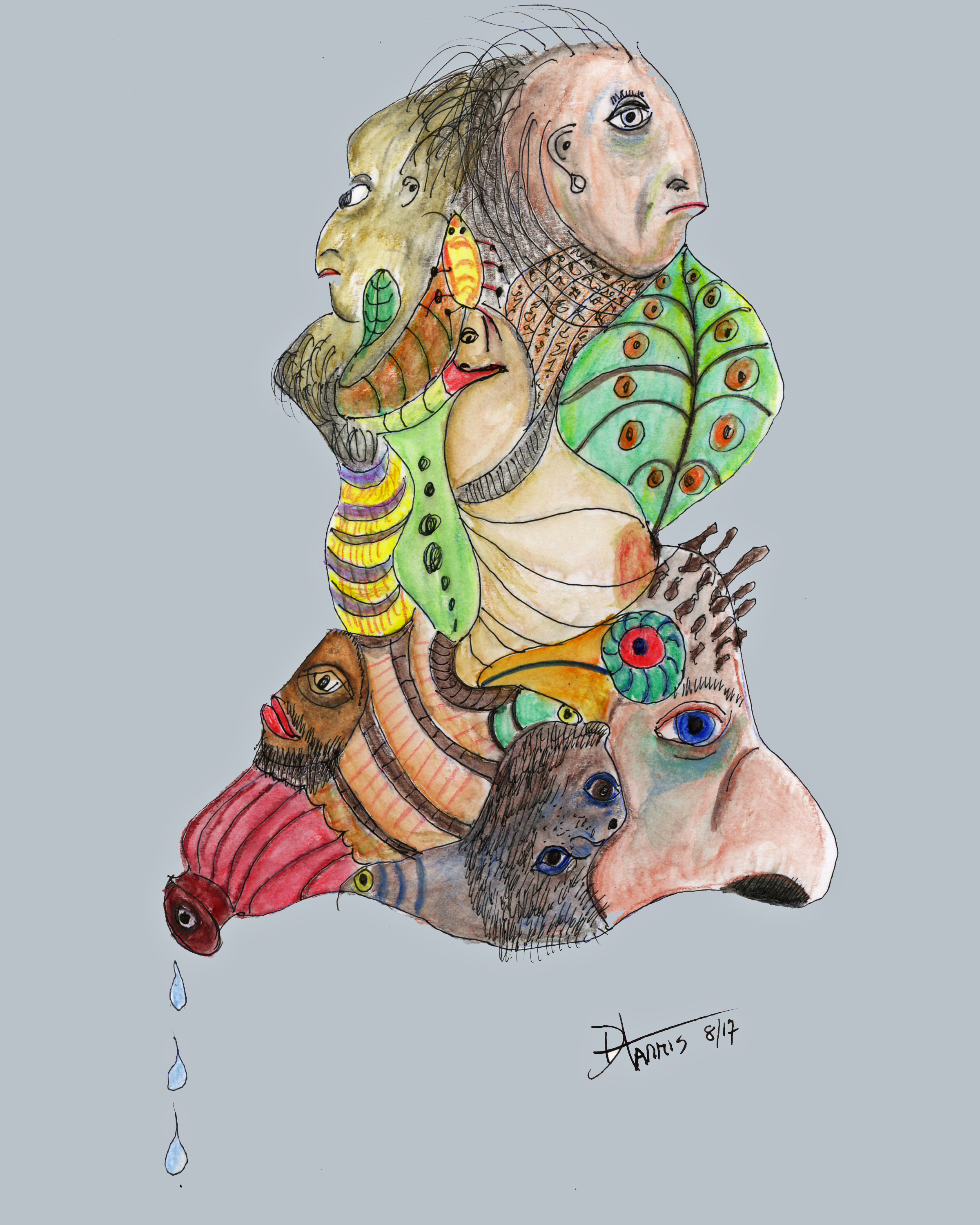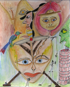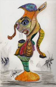 The Night Book is a folio of mixed-media paintings: pencil, ink, watercolor, Aquarelle pencil & acrylic. The paintings began as pencil, later ink, drawings made in my bedside Moleskine and Stillman & Birn sketchbooks while in that zone between wakefulness and sleep, A world devoid of reason but rich in images: half-formed, unrelated, surreal, erotic, even terrifying. A critic likened my phantasmagoric paintings to graphic poetry. Inspiration for the Night Book project came from Goya’s Los Caprichos (1799), and from François Desprez’s (1655) and Gustave Doré’s (1854) illustrations for Rabelais’s Pantagruel (1655), in my novel, The Nude Pianist (Fictionaut,­­­ 2016), a few of these paintings appear as the work of Francesco Martinelli.