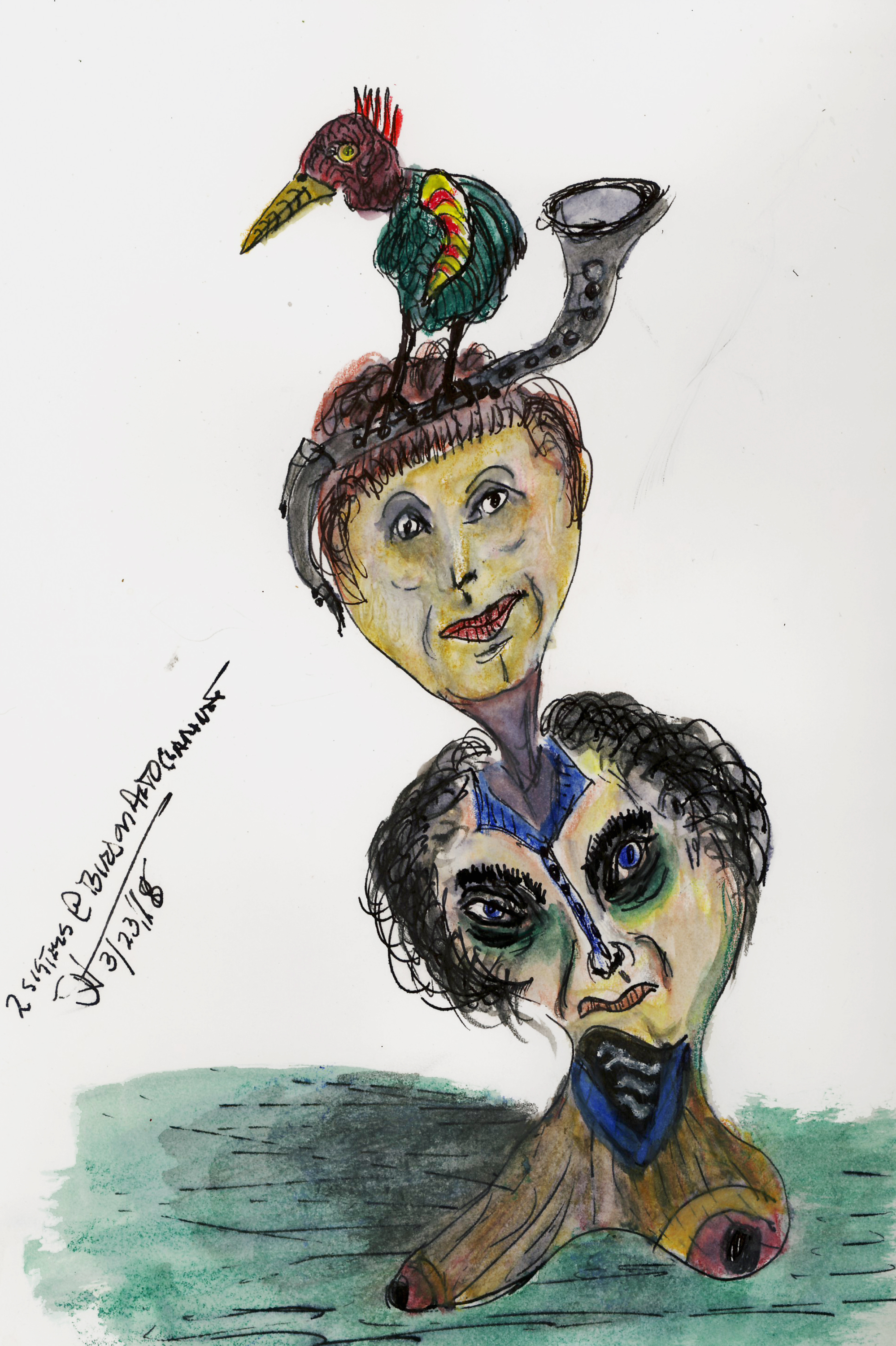 Nightbook 26: Two Sisters with Bird on Alto Clarinet